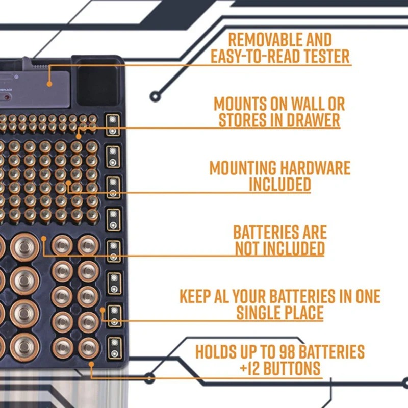 She placed it on her shelf—sleek, compact, with slots for AA, AAA, C, D, and 9V batteries, and a built-in tester. Now she could slide in all her batteries, neatly organized, and know instantly which ones were good or dead at the click of the tester. No more second-guessing, no more hunting.